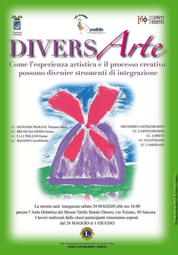 La mostra DiversArte, che sarà allestita da sabato 24 maggio a sabato 1 giugno presso l'Aula Didattica del Museo Tattile Statale Omero di Ancona, esporrà i lavori finali delle classi coinvolte nel progetto. L’inaugurazione della mostra prevista alle ore 16 prevede gli interventi di Giovanni Giri, Benedetta Orsetti e Andrea Socrati responsabile dei progetti didattici del Museo Omero.